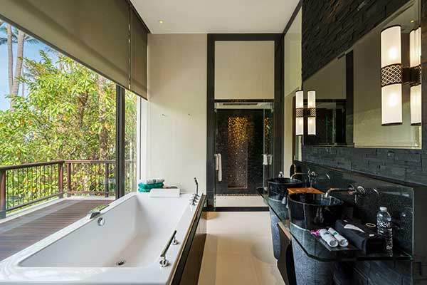 בריכה רחבה, חדר רחצה מרווח עם כיור כפול, מקלחת גשם ואמבטיה, דק חיצוני לאזור ישיבה, וחדר שינה וסלון פתוחים משתלבים יחד כדי ליצור וילה פרטית שמתמזגת באופן הרמוני עם גנים ירוקים, ומספקת מקום מפלט בתוך סביבה טרופית, במרחק קצר מקו החוף.