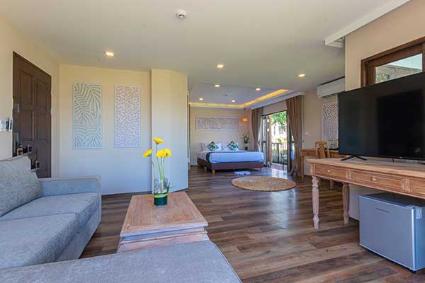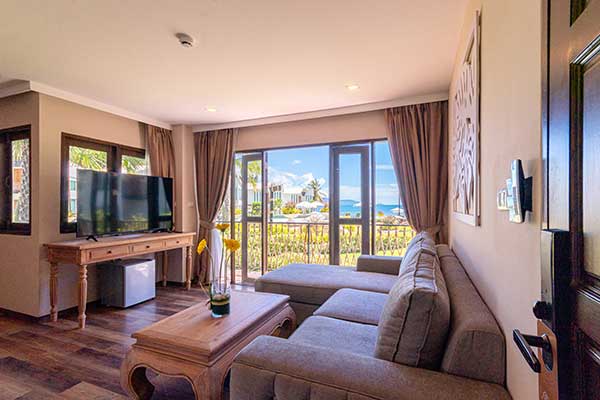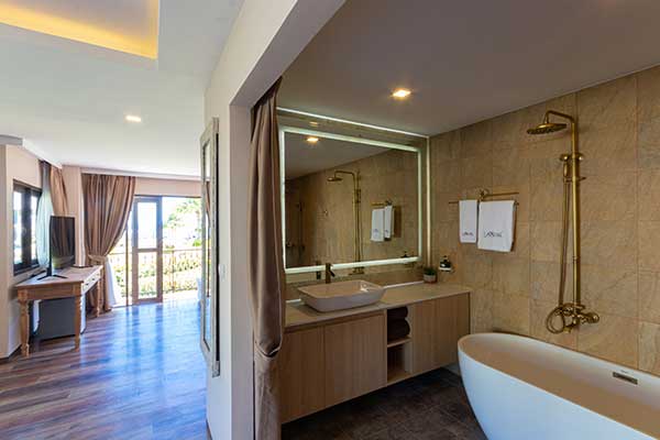 וילה פרטית עם נוף טרופי לים, בשטח של יותר מ 58 מ"ר וכוללת שטח מגורים פנימי, מצוידת במזרן הבלעדי שלנו לחלומות מתוקים. חדר האמבטיה המרווח שלכם מעוצב בסגנון נורדי מושלם.